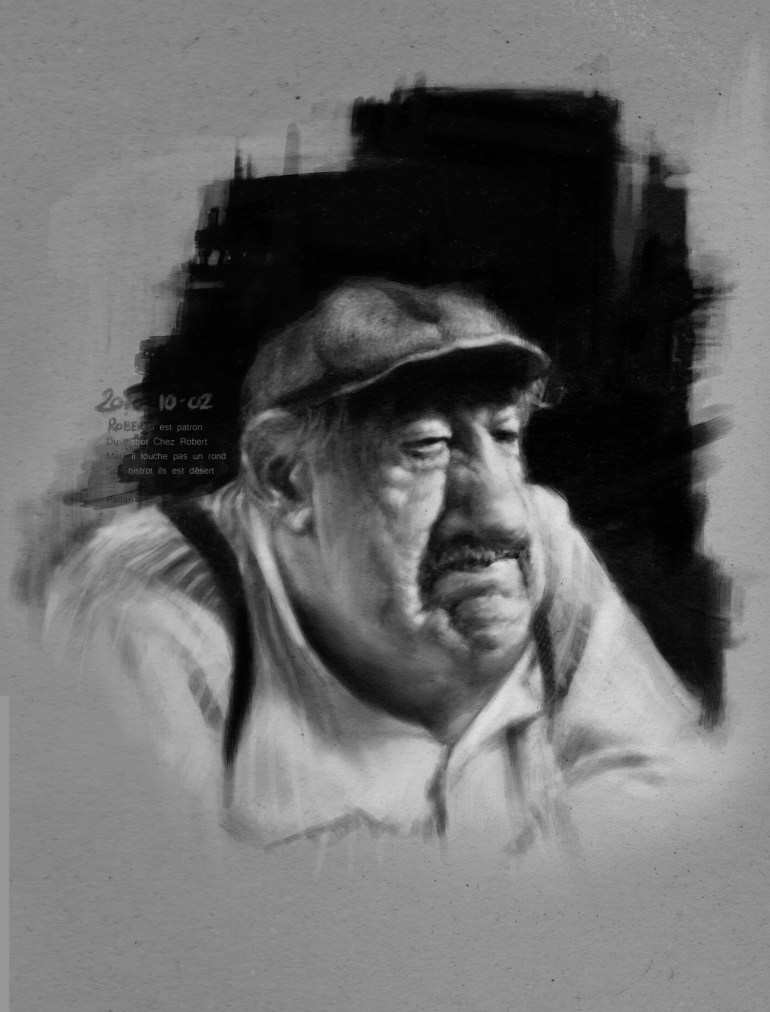 Cette fois-ci, j’ai tenté la méthode décrite dans « Sketching with Jason Seiler« , qui m’a ouvert les yeux sur de nombreuses choses. J’aime beaucoup ses caricatures, au passage.